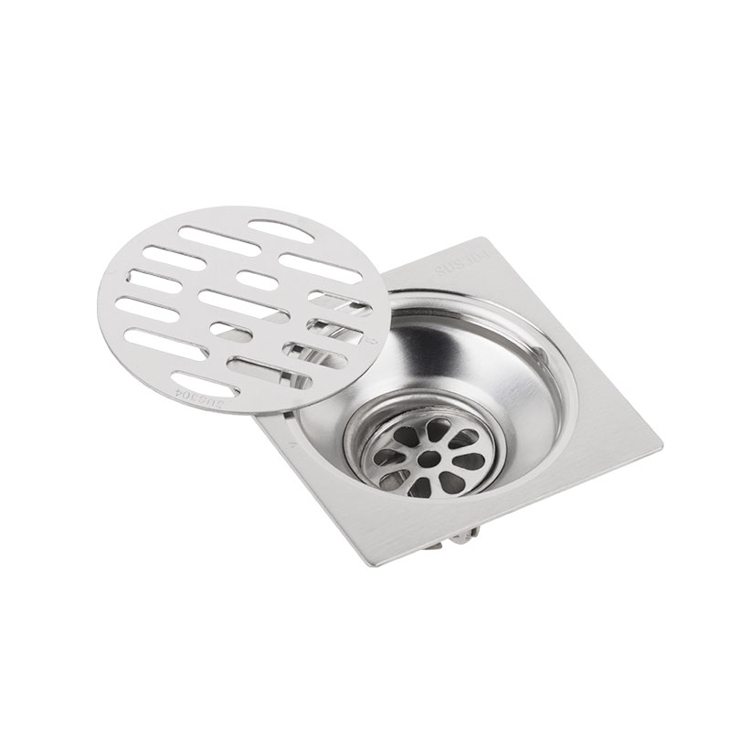 Square Insert Shower Drain with Hair Strainer, Stainless Steel, FD03