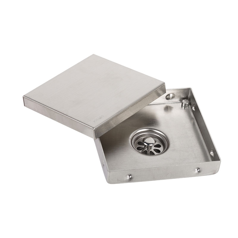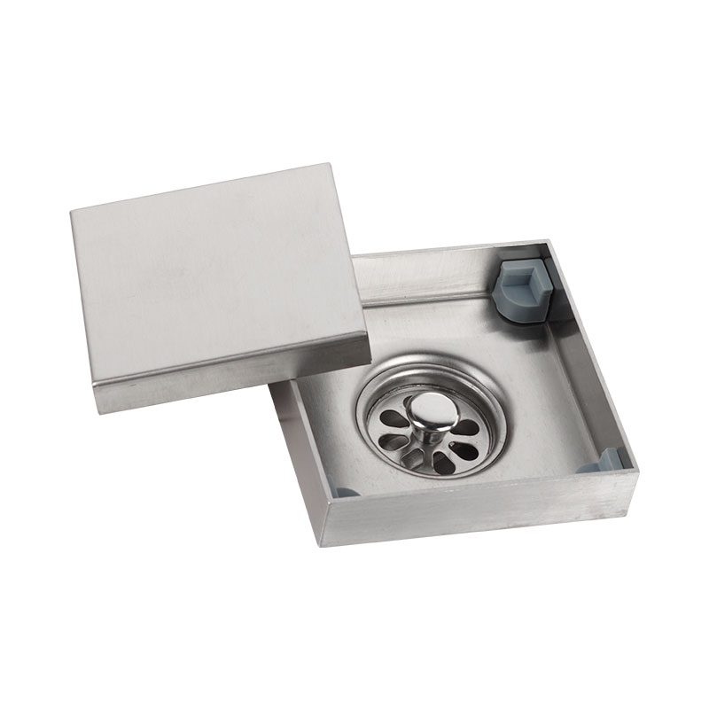 Square Shower Floor Drain with Tile Insert Grate, Stainless Steel, FD04