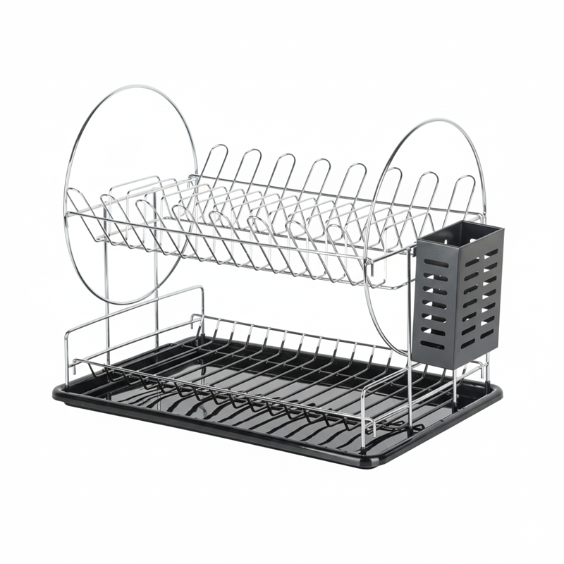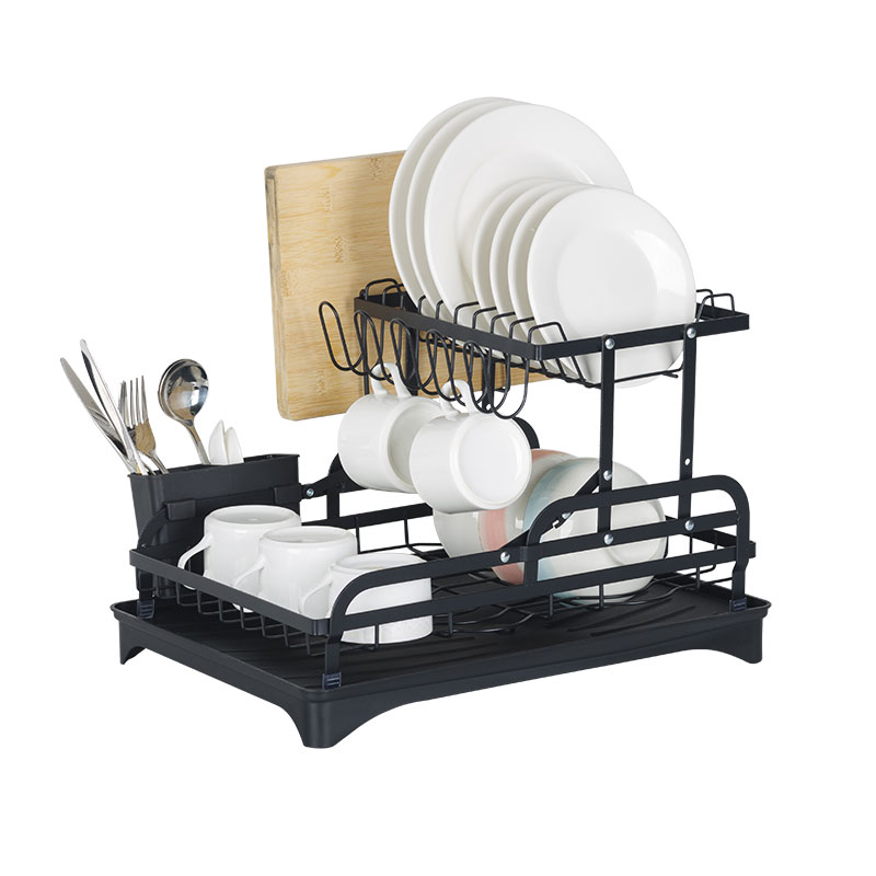 2-Tier Dish Drying Rack for Kitchen Counter, Black, Drainboard, 1KP2237