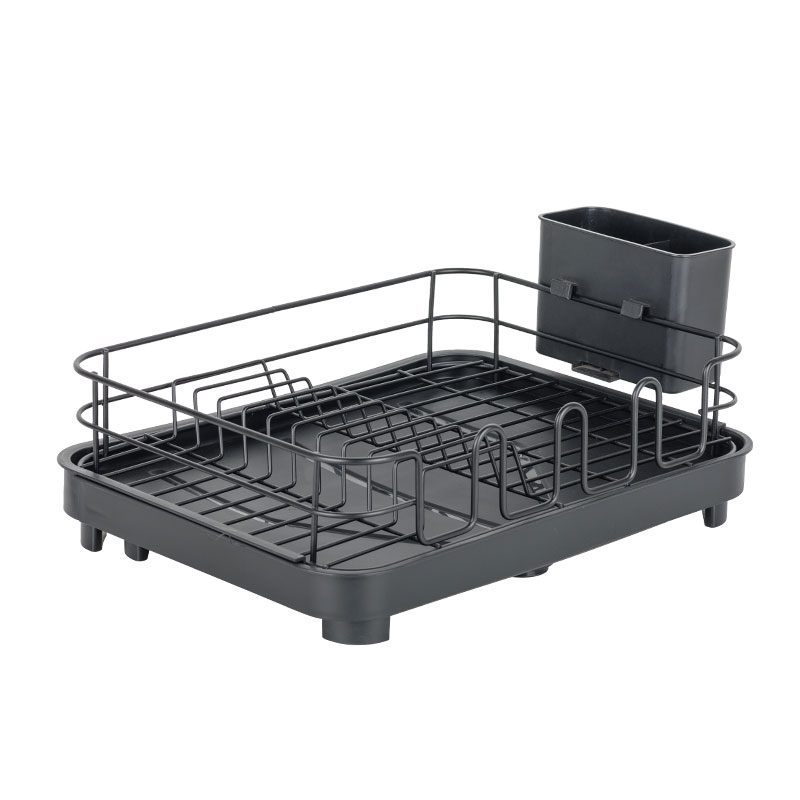 Metel Collapsible Dish Drying Rack, Black, Drainboard With Drainpipe,1KP2287