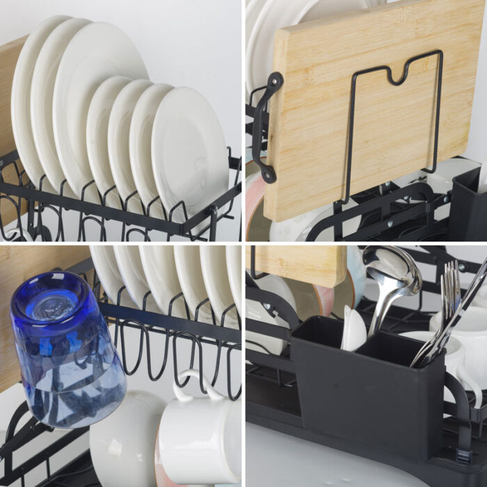 To maintain cleanliness and hygiene, our dish rack includes a plastic catch tray located on the ground floor. This tray efficiently collects any excess water, preventing mess and ensuring that your kitchen remains tidy. The combination of the two tiers and the catch tray means that you can dry your dishes quickly and effectively, eliminating any hassle during the after-meal clean-up.
