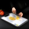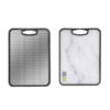 On one side, the cutting board is wrapped in 316 stainless steel, known for its exceptional durability and resistance to scratches. This special surface texture ensures that the board remains in pristine condition even after extensive use. The other side of the board is made from PP material, adorned with an elegant marble pattern that adds a touch of sophistication to any kitchen environment. This unique design allows users to switch between surfaces depending on their specific chopping needs, providing both flexibility and efficiency.