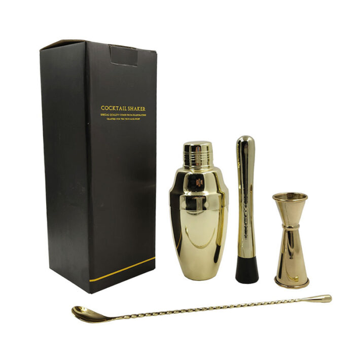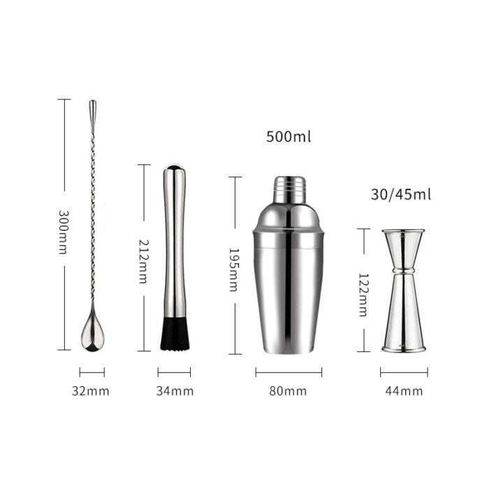Are you looking to enhance your home bar experience? Our newly introduced cocktail shaker set is the perfect solution. This comprehensive four-piece set includes a 500ml cocktail shaker, an ice crusher, a stirring spoon, and a 35/50 measuring cup, making it an ideal addition for both beginners and seasoned mixologists.