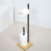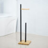 We are excited to introduce our latest product – a standing toilet paper towel holder made from high-quality wood and durable metal. This unique design not only serves a practical purpose but also adds a touch of elegance to your bathroom.