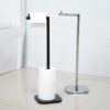 The BMA toilet paper holder stand dispenses 1 roll and holds 4 spare rolls. The roller arm cap can keep toilet paper roll in place, prevent it from falling off.