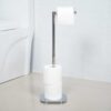 Free-standing toilet paper holder stores 3 or 4 extra tissue rolls