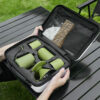This bma outdoor coffee set contains a manual grinder, coffee dripper, coffee filter paper, coffee kettle, coffee cup, coffee server, electronic balance and a Travel Bag.
