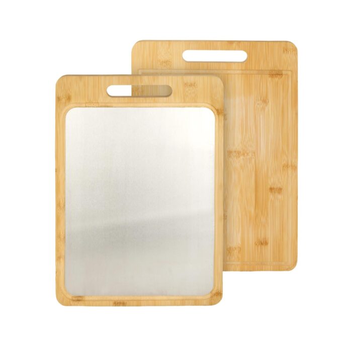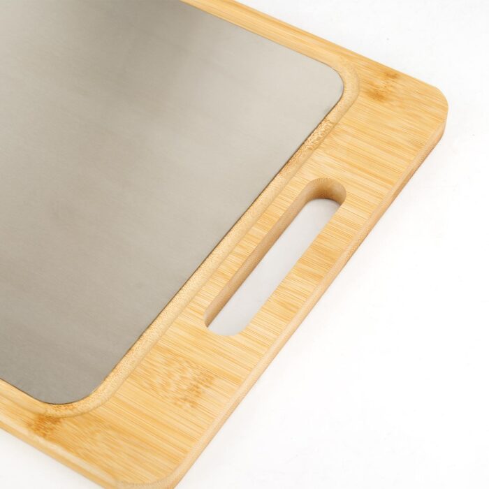 In the modern culinary market, versatility and hygiene are the top priorities for consumers. Our factory presents the Dual-Sided Chopping Board, a high-performance kitchen essential designed for professional and home use alike. By combining medical-grade stainless steel with sustainable bamboo, we provide a 2-in-1 solution that eliminates cross-contamination and enhances durability.