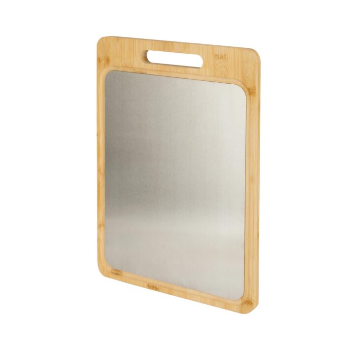 Dual-Sided Chopping Board, Stainless Steel, Organic Nanzhu Bamboo, DCB06