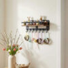 Entrance Hall Storage Rack and Key Holder for Wall, Black ,Metal, 7 Hooks, MKH1014