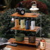This 3-tier Folding Camping Table is cleverly designed, folding volume is only 30*17*9.5cm, and when unfolded, it can be as high as 34.5cm, providing you with more than enough storage space. And there is extra hanging space on the edge of each tier. You can hang camping gear, cups, torches, pots, pans, and anything else with brackets or hooks on it. You can stay organised and tidy even when you are outdoors.