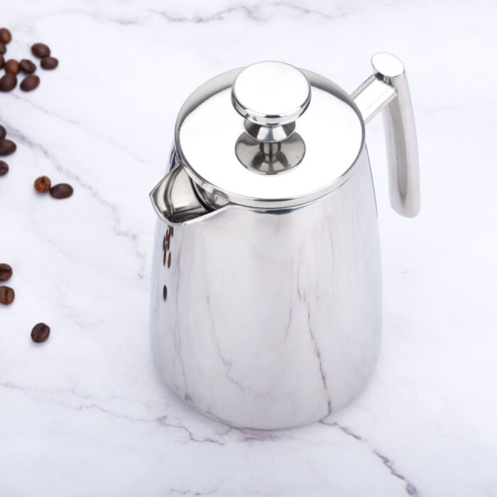 Stainless steel French press pot has a 3-layer filter structure with an ultra-fine stainless steel mesh strainer. You can use it to make tea and brew coffee without worrying about the tea or coffee powder mixing together and affecting the taste.