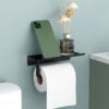 Wall mounted paper holder comes with a phone holder that fits most phone sizes, so you can place your phone on it and completely free your hands. And this rack is large enough, with the edges curving upwards, to safely hold other items such as, soap, Kleenex, small ornaments, air fresheners, books, newspapers or other things without sliding down, keeping them neat and tidy, handy in spacious or small bathrooms. Also this shelf will protect your rolls of paper from splashing water and keep them dry.