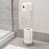 This paper roll storage shelf is a stand-up design with raised feet, which keeps toilet paper away from the bathroom floor, keeping it clean and dry, and also keeps it more secure.