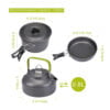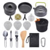 This comprehensive camping cooking set ensures you’re well-equipped for culinary adventures in the great outdoors! Remember to pack it all up neatly in the mesh bag for hassle-free transport!