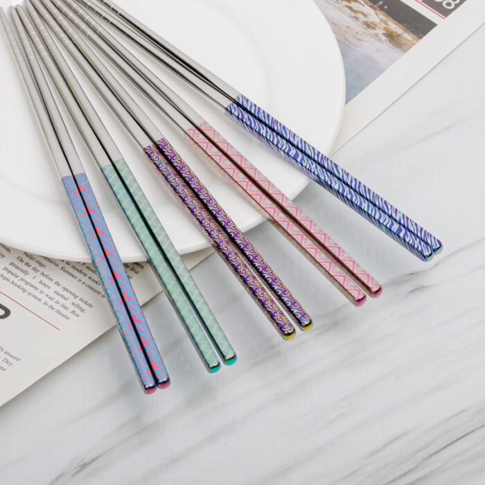 Premium Reusable Titanium Chopsticks Set, Laser-engraved, Colorful