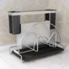 The surface of the knife rack and cutlery holder is made of metal finish, which is stain-resistant and easy to clean; double parallel groove design, the blades will not touch each other, safe and stable; non-slip and anti-scratch at the bottom, stable to place; hollow design, water filtration and breathable; multi-functional storage, knives, cutlery and chopping boards can be classified and stored neatly.