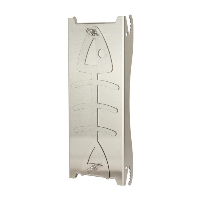 Secure “Fish-Lock” Clamping System: The sturdy, adjustable clamping bracket ensures that even large side-cuts of salmon remain securely fastened during the entire vertical grilling process.