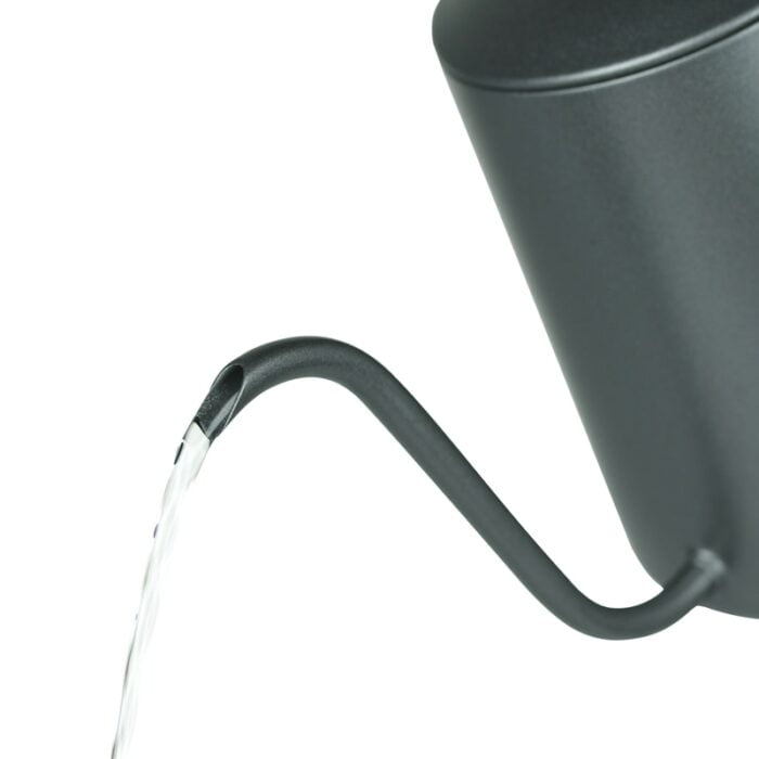 This kettle is designed with a gooseneck spout for precision control during pouring.