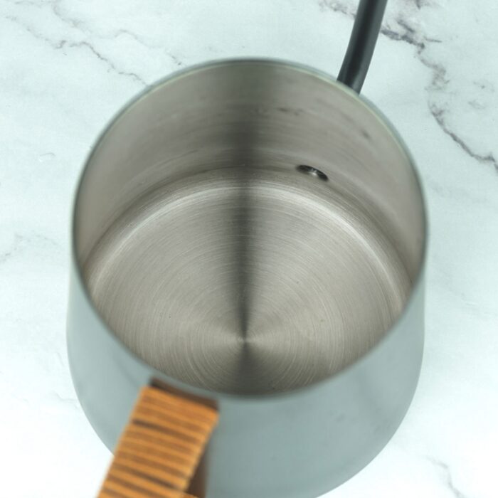 Our pour over coffee kettle is made of food grade 304 stainless steel ,non-rust nor corrosive, and the fine brushed the inner wall, easy to clean.