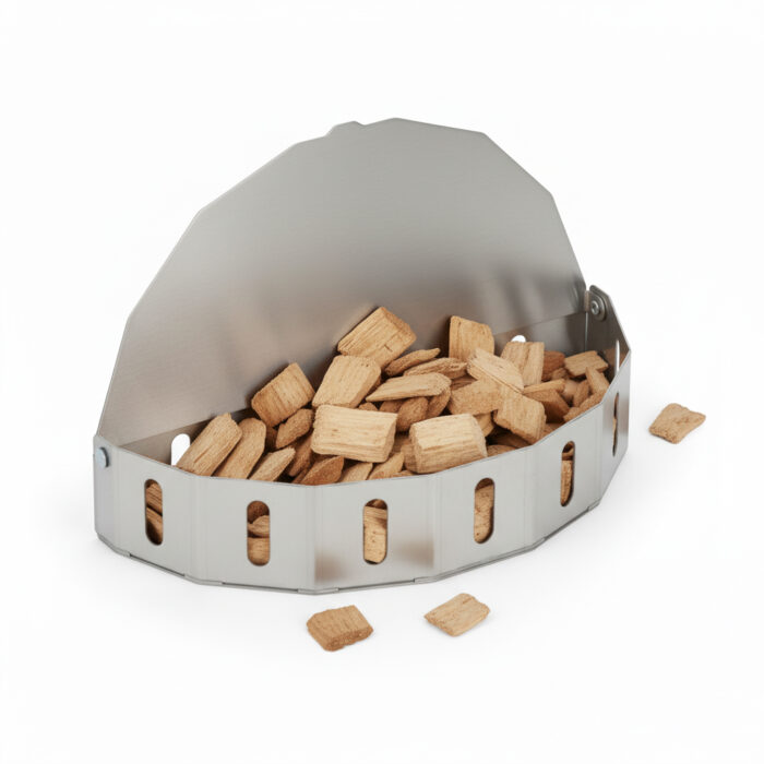Its unique feature is the convenient flip-top lid, allowing for effortless addition of wood chips or checking the smoking process without the need for strenuous disassembly. The half-round design of the smoker box makes it highly adaptable to both rectangular and circular grills, maximizing space utilization.