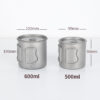 Titanium Coffee Mug with Lid and Foldable Handle, 500/600ml, Outdoors, 1CP2410
