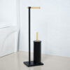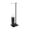 Toilet Paper Holder Stand with Toilet Brush, Black, Wood and Metal, PH624