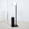 Our toilet paper holder stand might just be the perfect addition. Crafted from high-quality metal and wood, this stand not only enhances the décor but also serves as a practical storage solution. Its sleek black finish adds a modern touch, while the option to customize the color ensures it aligns perfectly with your personal style.